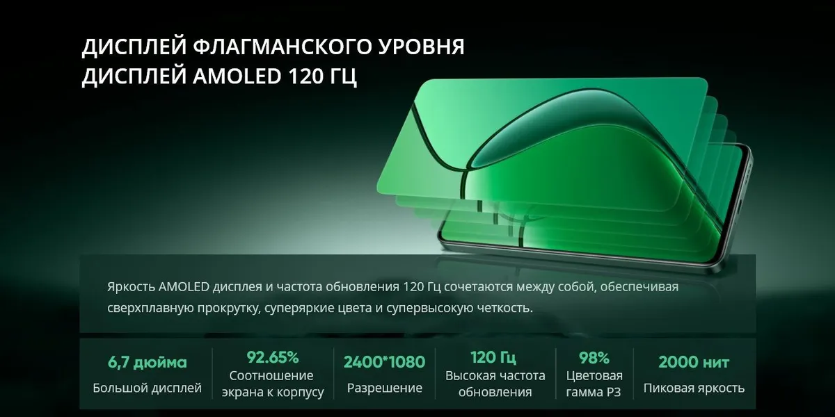 - Экран: 6,67" sAMOLED матрица, разрешение 2400x1080 пикселей